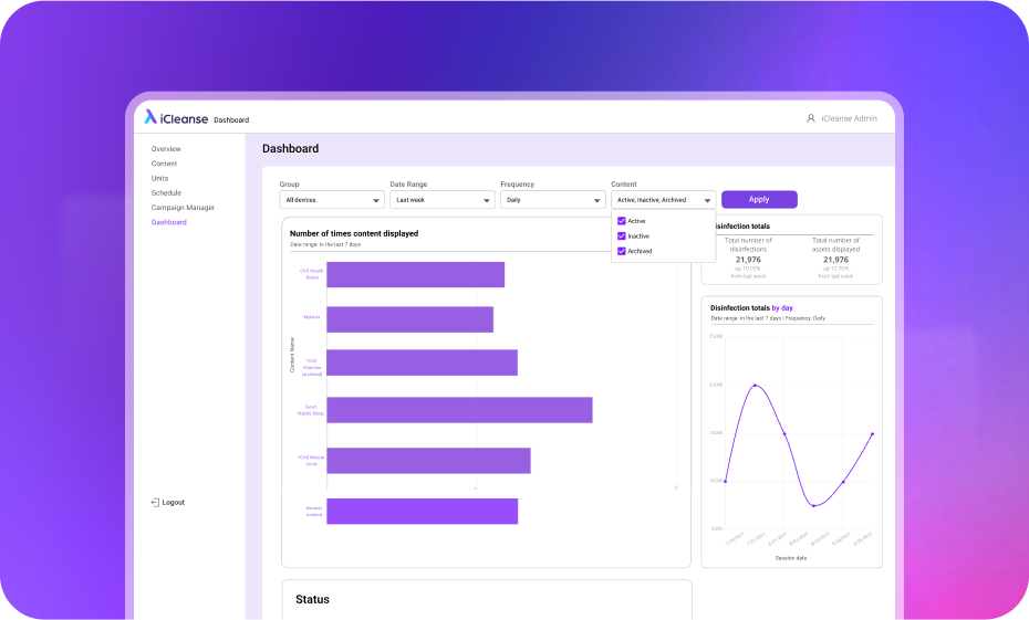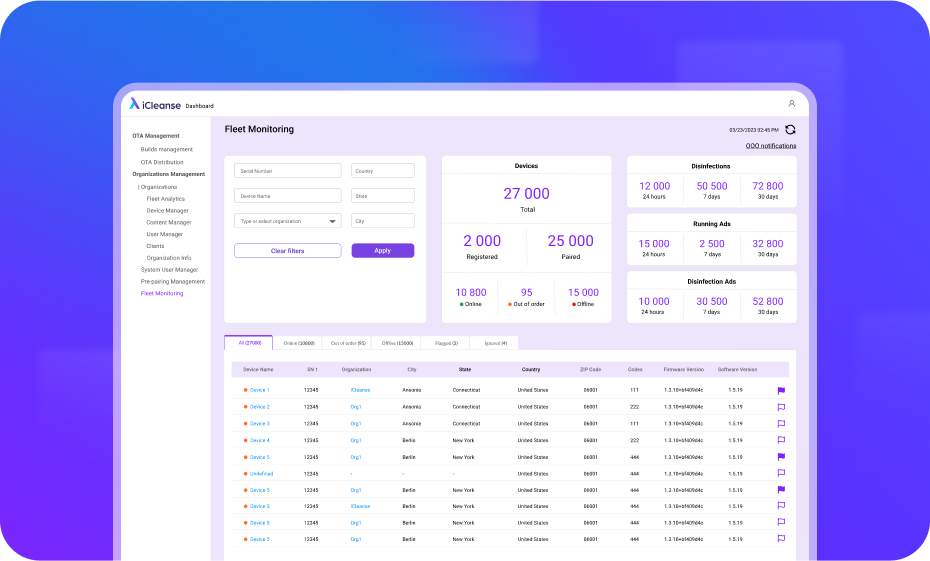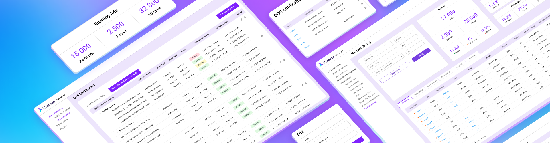 iCleanse administrators can gain access statistics for each device or an aggregated overview. The data includes the number of advertisement displays and the percentages of increased or decreased advertisement displays compared to the previous day, week, or month. In order to streamline the storage of ad display records, the development team integrated a clever approach to the application’s at the business logic leve. At the beginning of the next day, week, or month, the records from the previous period (day, week, month) are consolidated and recorded as a single entry in the statistics. Thanks to this optimization, our clients experience reduced server loads and benefit from cost savings on cloud resources.