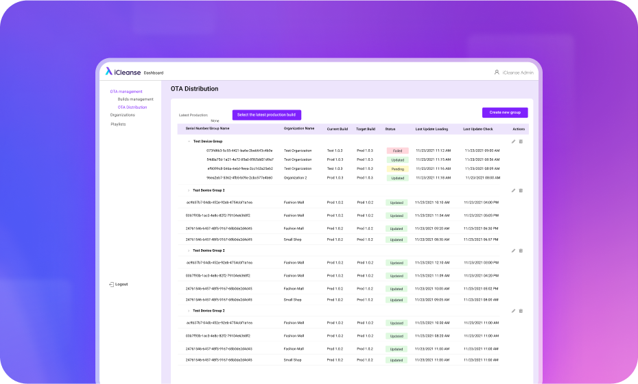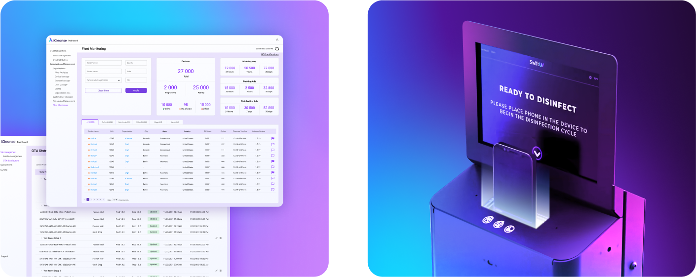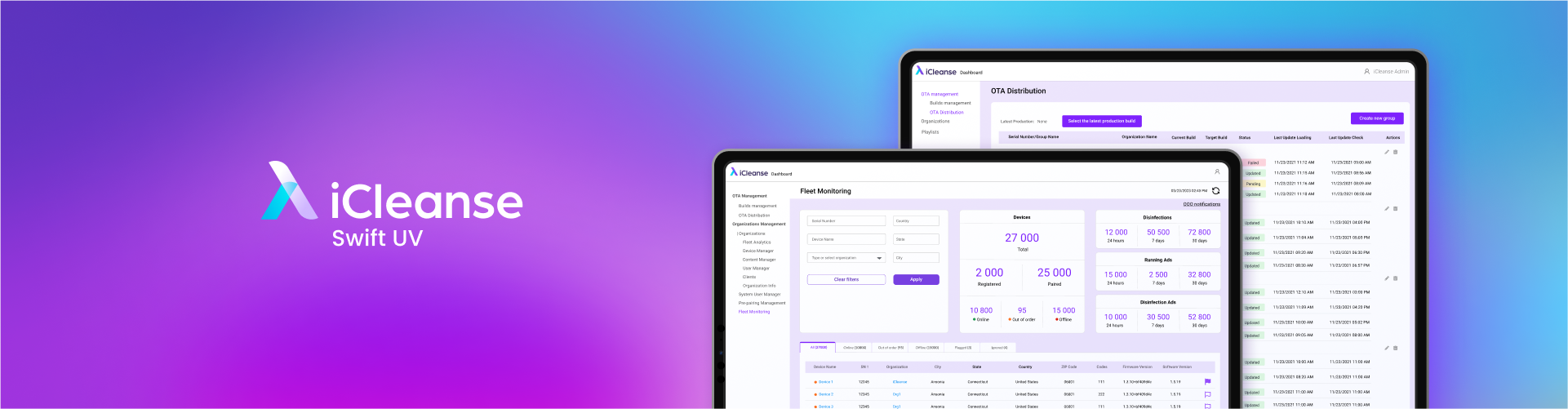 Additionally, the iCleanse Swift UV panel allows administrators to manage company’s devices and distribute new application versions via the OTA Manager.